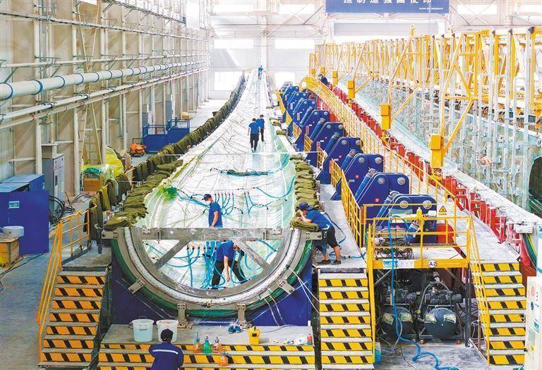 2025年12月16日,东方风电(若羌)新能源有限公司,工人在风机叶片生产线上忙碌。苏 波摄(中经视觉)