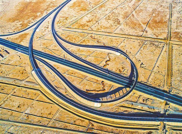 2025年11月22日拍摄的G0711尉犁至若羌高速换G0612若羌至民丰高速互通段。王勇强摄(中经视觉)